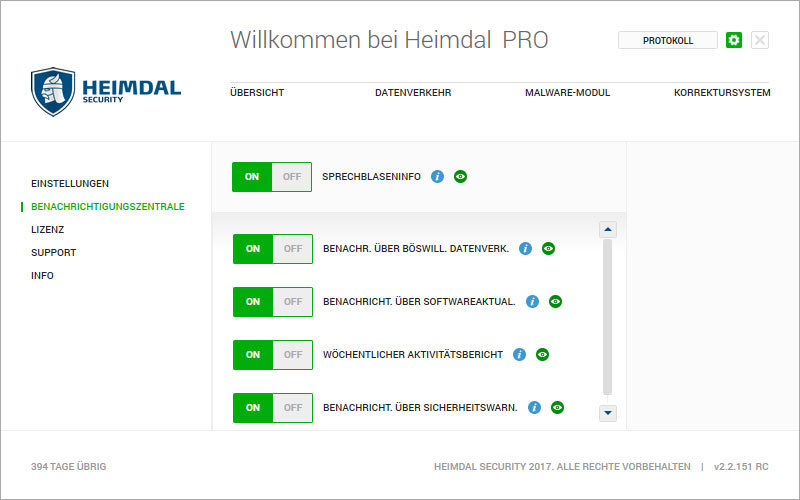 Heimdal PRO ist äußerst wirksam gegen Finanz-Malware und hochkomplexe Formen von Malware, die von Virenschutzprogrammen nicht erfasst werden. Heimdal untersucht Datenverkehr, ein Virenschutzprogramm hingegen prüft lokale Dateien. Daher ist Heimdal PRO die beste Ergänzung zu jedem im Handel erhältlichen Virenschutzprogramm und ein wichtiger Faktor hinsichtlich Ihres Schutzes im Internet.